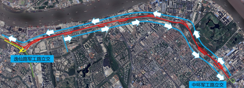 目前逸仙路军工路立交北向东匝道尚未完工,暂无法实现逸仙高架路直接转向军工高架路。据了解,军工高架路通车后,将与同济高架路、逸仙高架路、中环东段共同构成中心城东部南北向快速通道,向北经逸仙高架路、同济高架路直达高铁上海宝山站,向南通过华夏高架路直通浦东国际机场,实现上海东部地区交通格局的质的飞跃。