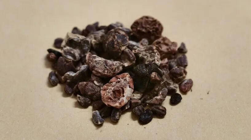 砂仁,经采收后晒干或低温干燥,呈椭圆形或卵圆形,有不明显的三棱,表面棕褐色