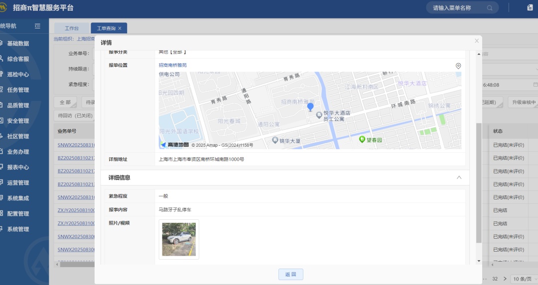 如此高效的服务,得益于招商物业在党建引领下搭建的数字化平台——招商π智慧服务。该平台实现了24小时实时监测电梯运行与公共区域安全,更打破了传统治理的部门壁垒:从电话受理、AI识别,到自动生成工单、5分钟内派单、20分钟内人员响应,全程“无缝衔接”,让居民的“急难愁盼”从“等回应”变成了“秒响应”。