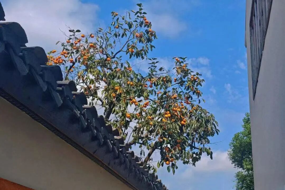 近日,随着“老舍故居的柿子树成功入秋”在网络上走红,秋意也悄然漫进上海。上周起,申城气温正式转凉,而在奉贤区青村镇莳下田园餐厅,那棵“网红柿子树”也已悄然披上红装。白色小屋静立,金色稻田铺展,枝头点点红柿摇曳,共同构成一幅生动的江南秋景图。
