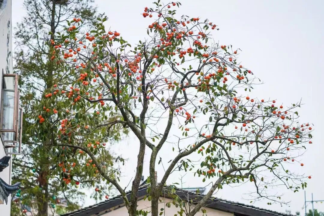 特色:低垂的柿枝与古朴的屋檐形成绝佳构图;