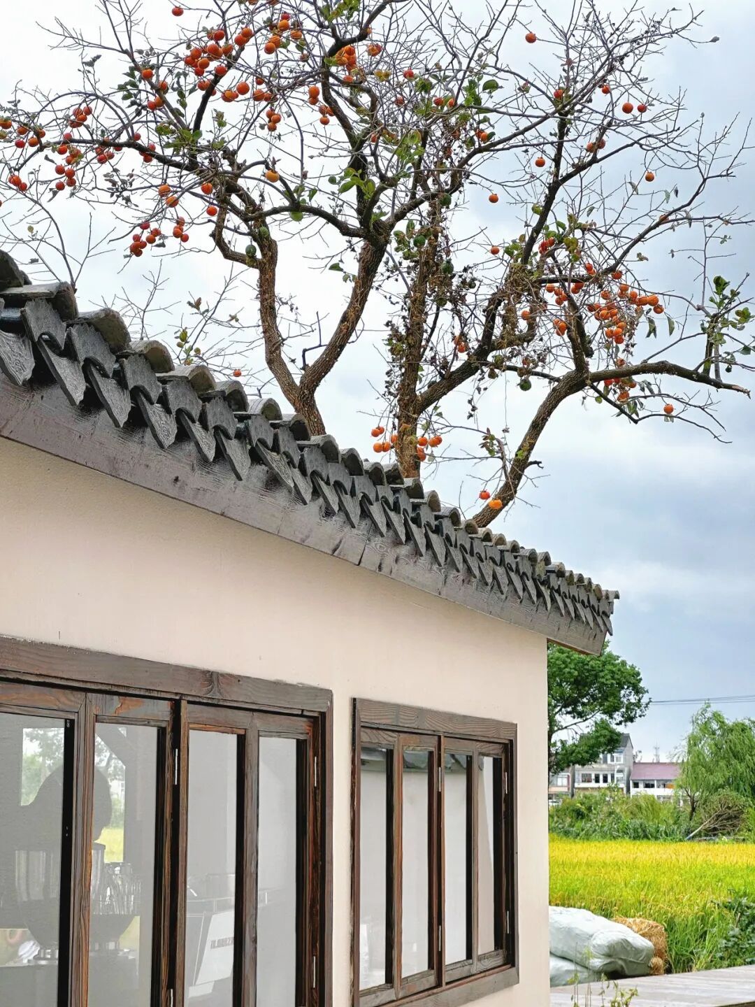 与北京老舍故居院中那棵承载人文记忆的柿子树不同,“莳下”的柿子树,自带一份南方田园的轻盈诗意。餐厅负责人逗逗说:“我们的柿子树是田园的一部分,它背后没有厚重的历史,但它与稻田、水系和天空共同构成的画面,是活的、充满生机的。”