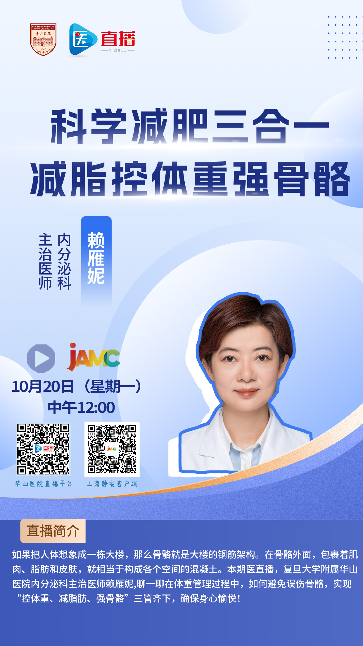 如果把人体想象成一栋大楼,那么骨骼就是大楼的钢筋架构。在骨骼外面,包裹着肌肉、脂肪和皮肤,就相当于构成各个空间的混凝土。本期医直播,复旦大学附属华山医院内分泌科主治医师赖雁妮,聊一聊在体重管理过程中,如何避免误伤骨骼,实现“控体重、减脂肪、强骨骼”三管齐下,确保身心愉悦!