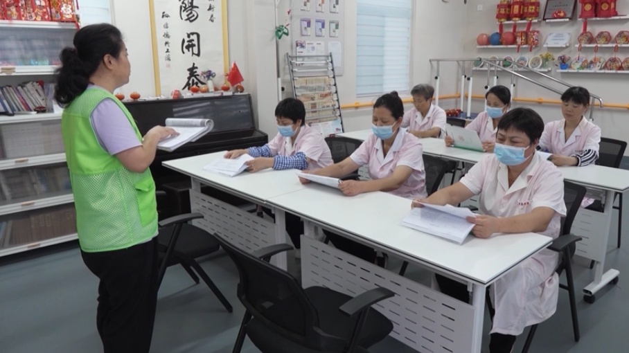 在黄娟的带动下,护理团队定期利用老人午休时间开展理论学习和实操训练。这支10人团队中,不少都是高级护理员,逐步成长为懂护理、懂心理、懂营养的“多面手”。