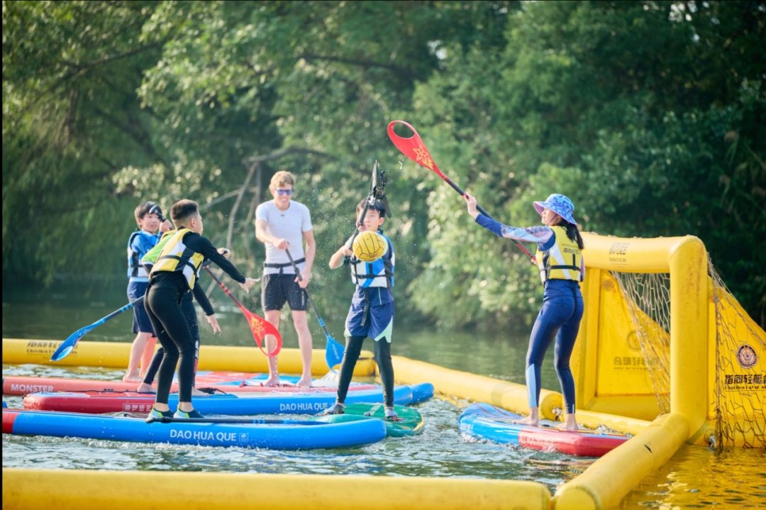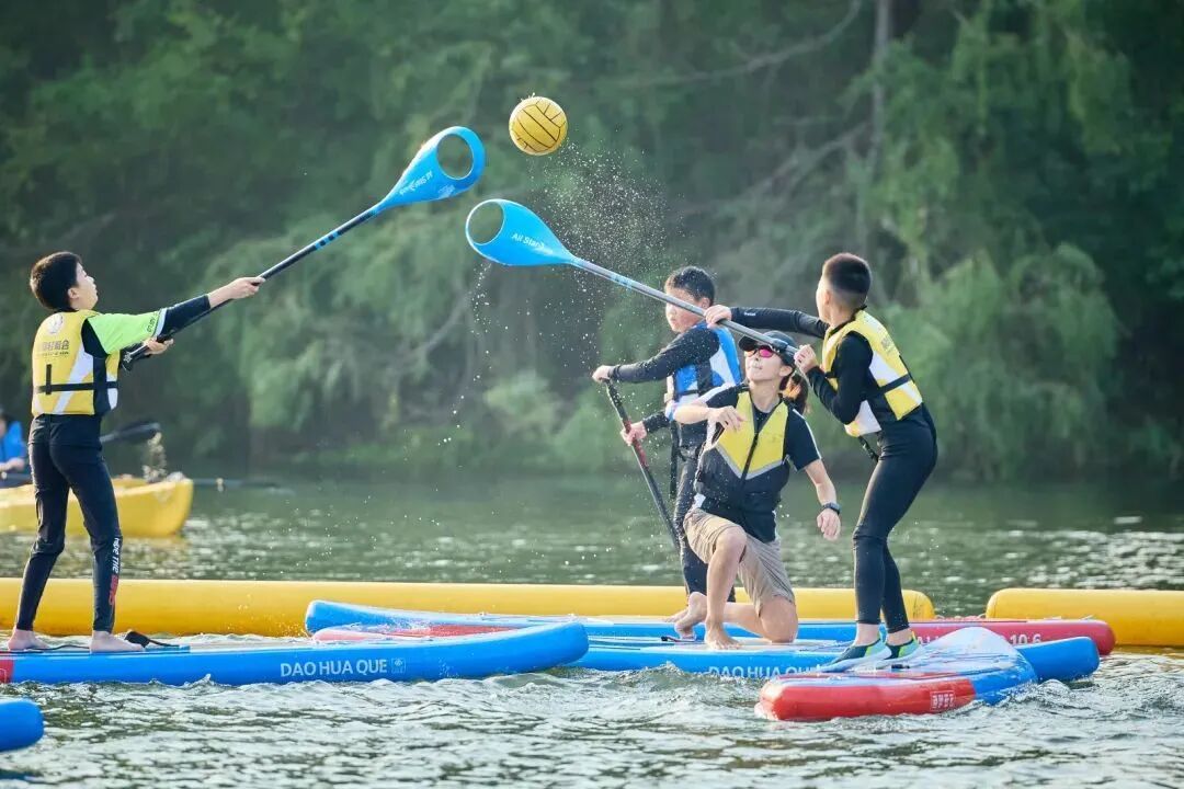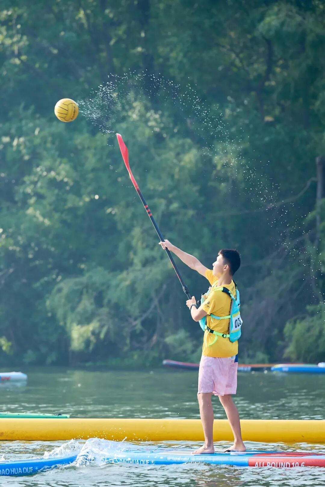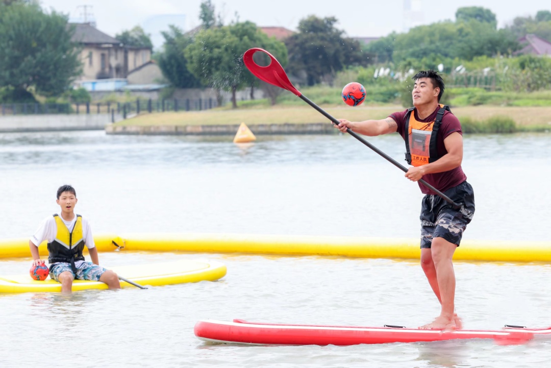 桨板球绝非一人之功,是一项极度强调团队配合与默契协作的竞技运动。赛场上,队员们需要不断跑位、传接,每一次精彩的进攻得分都源于团队的信任与协作,是集体智慧的生动体现。同时,选手们不仅要具备娴熟的桨板操控能力,更是要在复杂的对抗环境下完成判断、击球等一系列技术动作。这要求他们既具备出色的个人划行技巧,也拥有清晰的战术头脑,是体能、技巧与策略的多重较量。