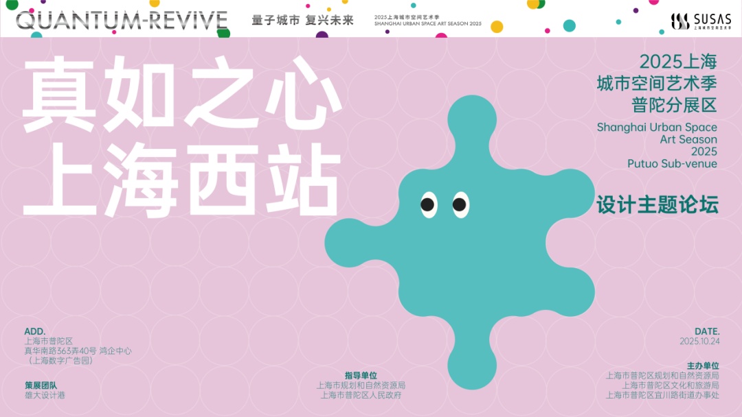 在上海城市空间艺术季整体聚焦“量子城市・复兴未来”主题的背景下,普陀分展区“量子脉动·艺活普陀”主题展于10月10日正式启幕。两个月时间内,精彩纷呈的特色活动轮番登场,10月24日下午举办“真如之心 上海西站”设计主题论坛,旨在结合“真如之心国际征集”成果,聚焦城市空间设计与更新,探讨如何通过创新设计推动真如副中心及普陀区的高质量发展。