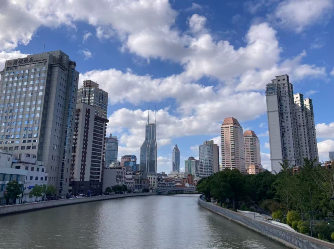 经历了几天阴沉的初秋,这两天,申城迎来秋高气爽的好天气。阳光如碎金般洒落,天空澄澈如洗,气温徘徊在二十摄氏度上下,微风拂面清凉而不凛冽。如此明媚的天气,不仅点亮了城市的轮廓,更唤醒了人们走出家门的兴致。苏州河畔成为不少市民亲近自然的首选之地,在这片滨水空间,大家尽情享受着难得的暖意与惬意。