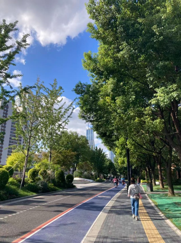 苏河两岸,秋意正浓。在河畔蜿蜒的亲水步道上,随处可见漫步的人群。