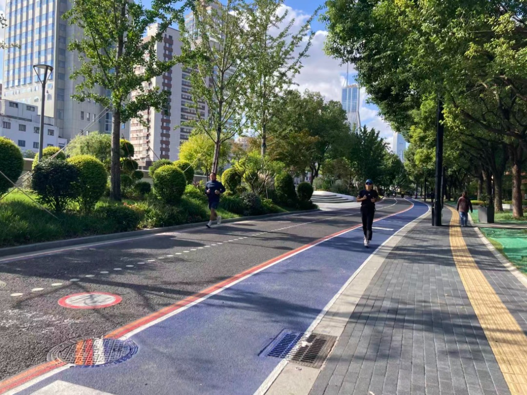 三三两两的年轻人,以时下流行的“City Walk”方式,漫步于树影摇曳的岸边,用镜头记录城市温柔的一面;精神矍铄的老人或缓步闲谈,或倚坐长椅,闭目感受阳光轻柔地铺满脸颊。偶尔有晨跑者轻快掠过,身影在光与影之间穿梭,为这幅静谧的画面添上几分动感的笔触。