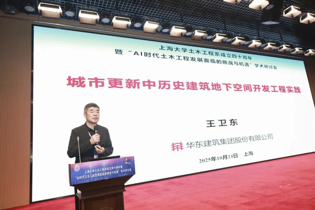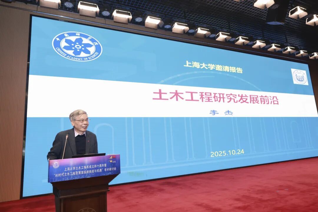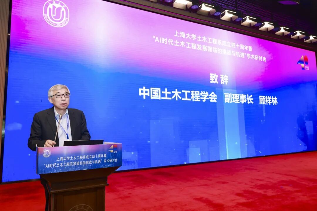 10月24日,上海大学力学与工程科学学院土木工程系成立40周年暨“AI时代土木工程发展面临的挑战与机遇”学术研讨会在宝山校区召开。中国科学院院士、重庆交通大学校长赖远明,中国科学院院士、同济大学教授李杰,中国土木工程学会副理事长、同济大学原副校长顾祥林,浙江工业大学党委书记蔡袁强,华东交通大学校长徐长节,上海应用技术大学原党委书记刘宇陆,江苏大学副校长王景全,上海大学原副校长叶志明,全国工程勘察设计大师、华东建筑集团股份有限公司总工程师王卫东,上海建工集团股份有限公司总工程师陈晓明,上海隧道工程股份有限公司总工程师朱雁飞,上海市土木工程学会、上海市地质学会、国内相关高校、科研院所和企业专家学者,校党委副书记、副校长胡大伟,校内有关部处、学院负责人和力工学院师生代表出席大会。