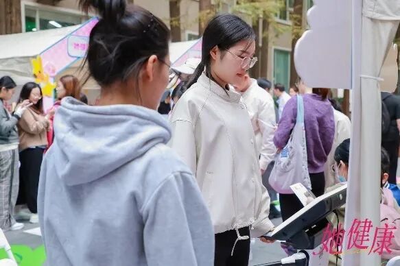 近日,由杨浦区妇联联合上海市女医师协会、上海财经大学及美团医药健康共同主办的“她健康”公益系列活动——“粉红丝带特别行动”,在我校国定路校区温情举办。活动以轻松有趣的“集市”形式,结合专业医生义诊与健康检测,为在校女性师生带来一场有温度、有干货的健康关怀体验。