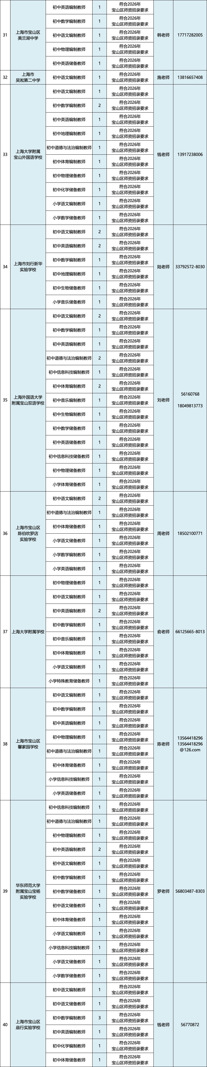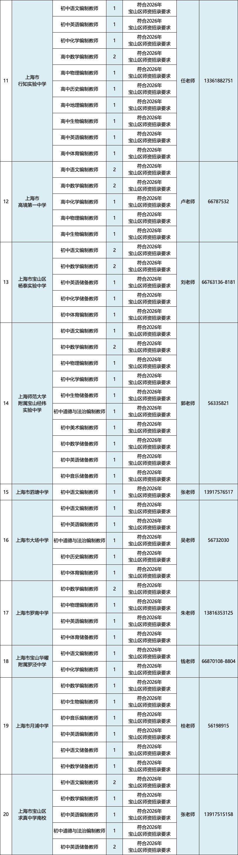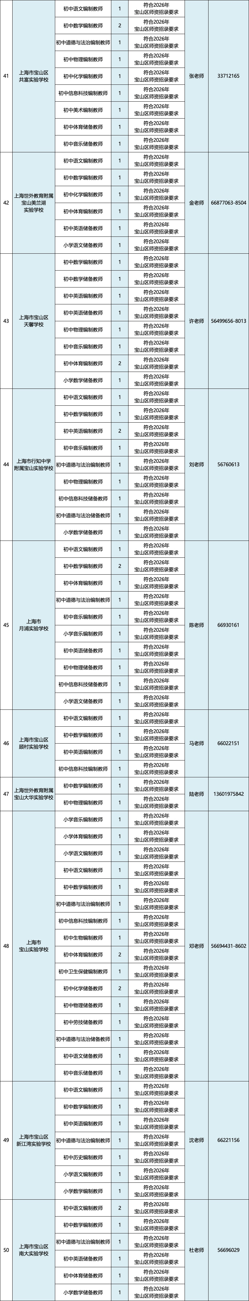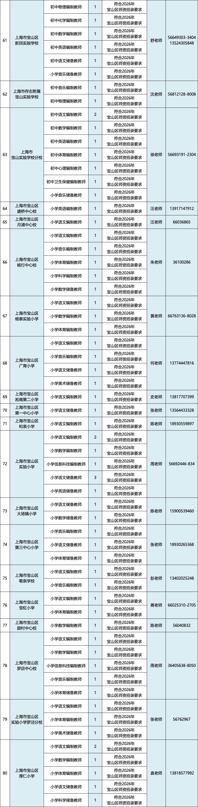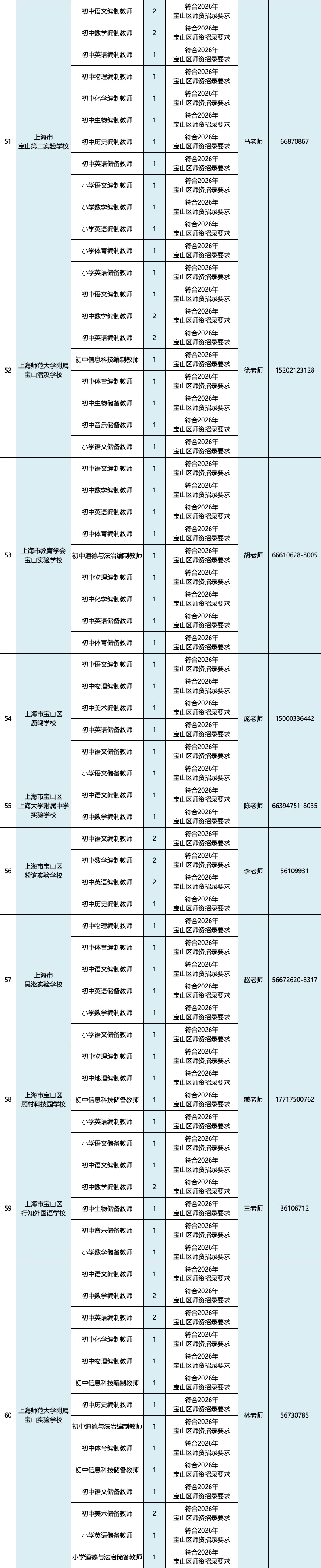 注:各单位任职要求最终以“宝山区师资招聘平台”公布的具体信息为准。