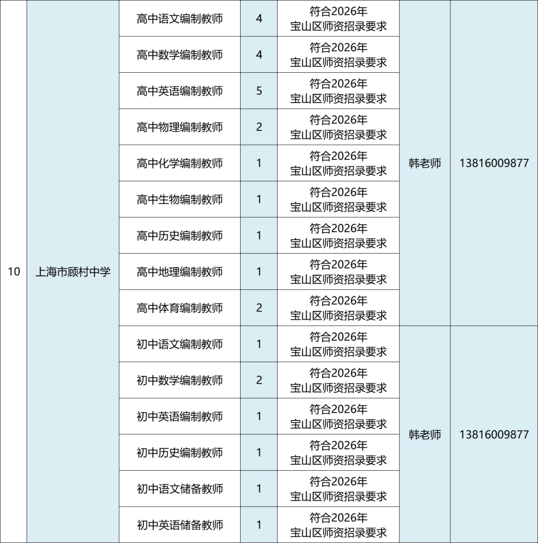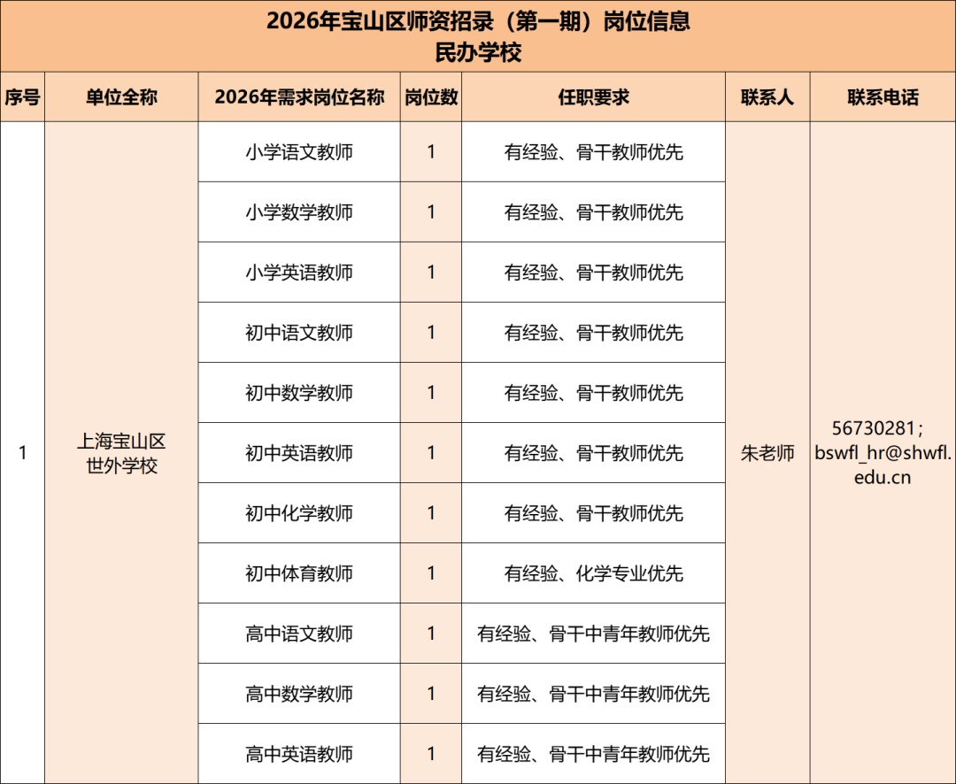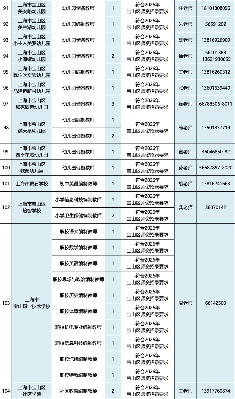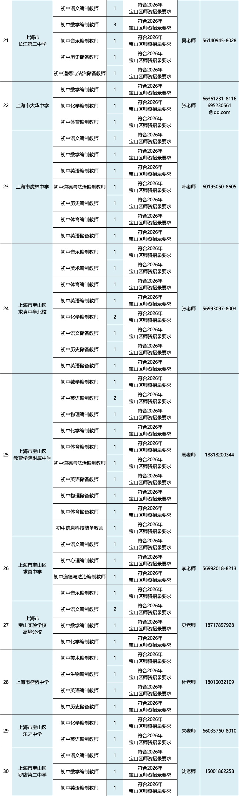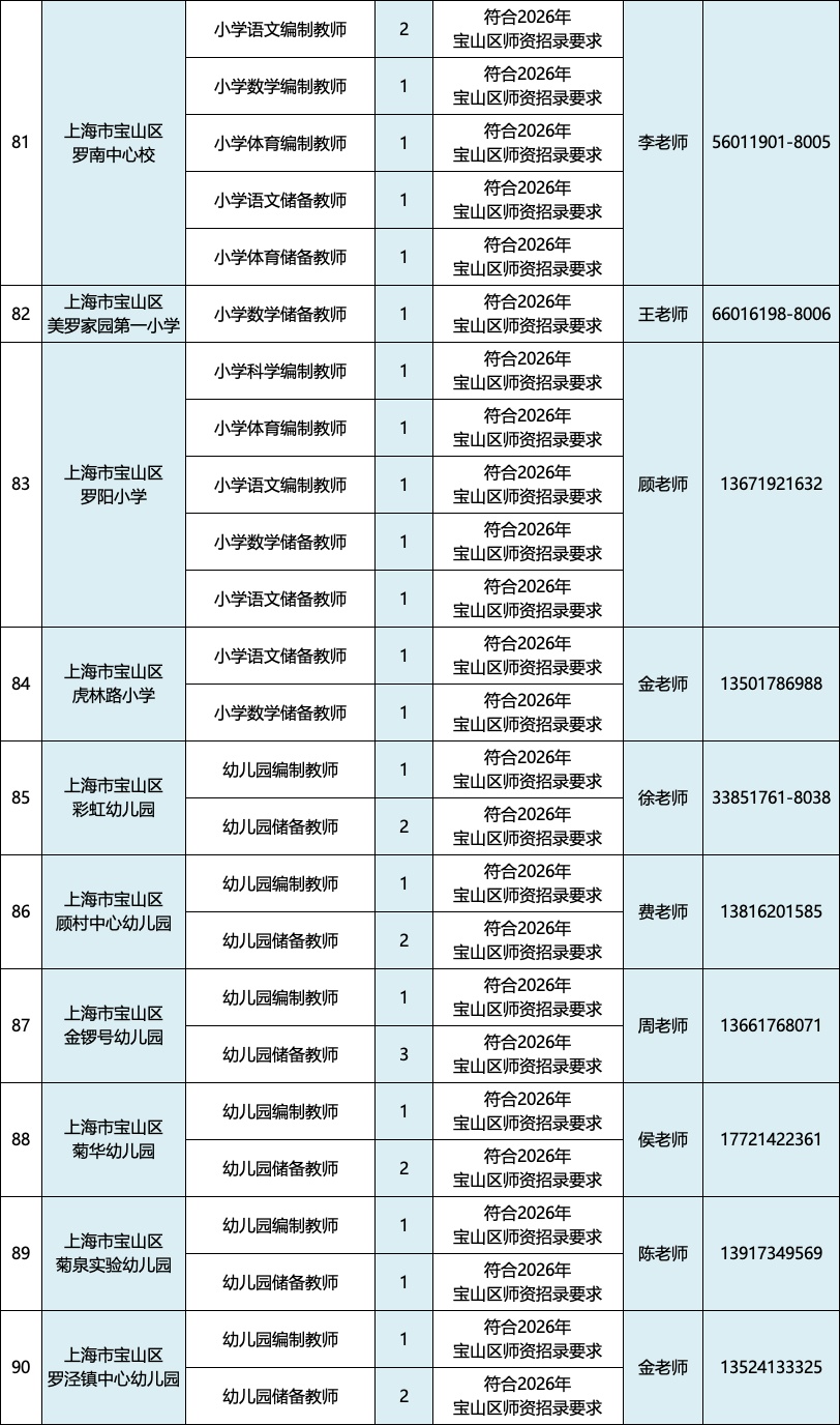 注:各单位任职要求最终以“宝山区师资招聘平台”公布的具体信息为准。
