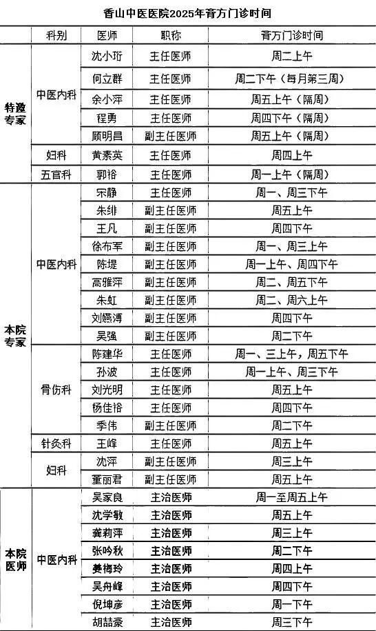 膏方门诊日程一览