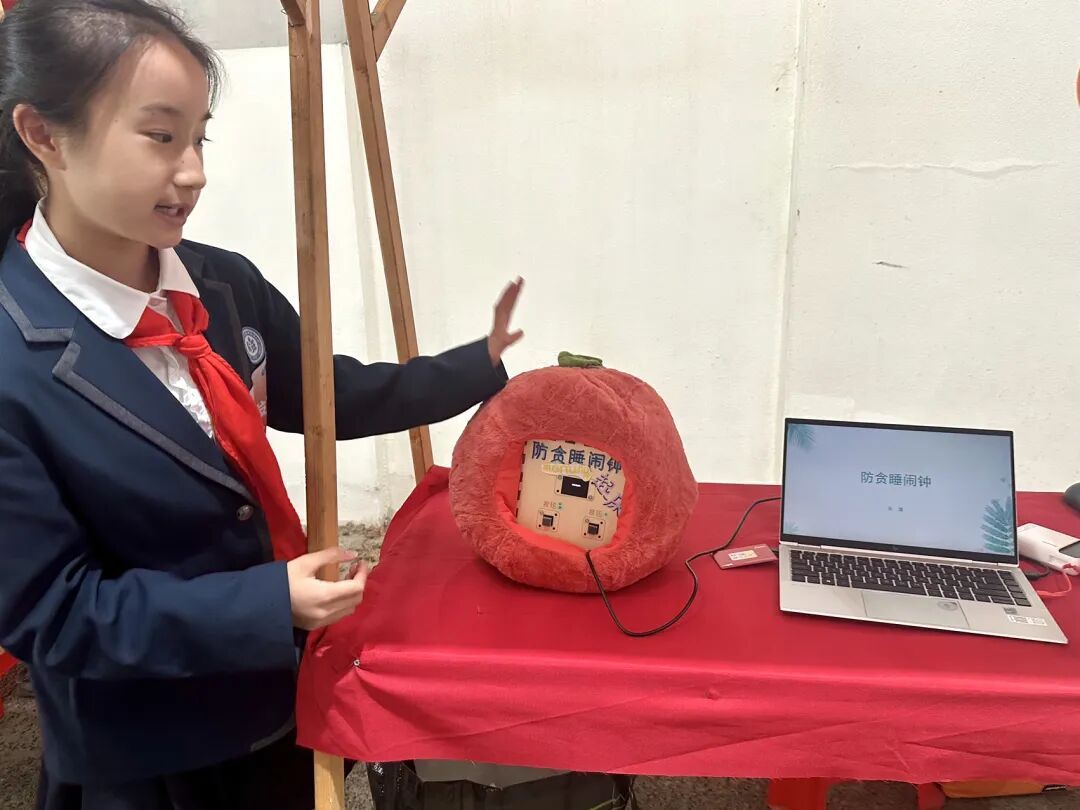 “这只闹钟和普通闹钟的区别在于,铃声响后,使用者必须做对一道数学题才能按停,这样能使他的大脑完全清醒过来。”一次睡过头的经历,让华东师范大学第二附属中学附属初中学生吴霜酝酿出发明“防贪睡闹钟”的想法,在学校老师的指导下,她将创意变为了现实。