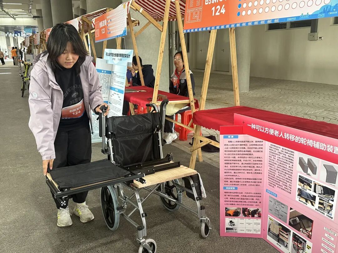 本次大会吸引全市16个区逾1800名学生报名,经过导师团队线上初选,最终1300余名学生齐聚嘉定,现场创意火花四溅。上海市回民中学学生陈韵禛设计了一套轮椅辅助装置,可以让使用者自行完成从轮椅到床的转移。交大附中附属嘉定洪德中学学生蒋云来设计出一套基于机器视觉的电动车棚精准灭火装置,为社区安全提供低成本、高智能的解决方案。上海市嘉定区疁城实验学校学生王振源设计了一款“多功能智能平衡外卖箱”,能让外卖不再“翻江倒海”。