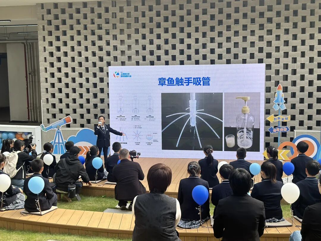 创新不一定是“高大上”的,生活中处处潜藏着创新点。上海大学附属嘉定实验学校七年级学生郑梓谦谈起了自己投身发明创造的缘起:“一切的开始源于妈妈扔洗发水瓶时说的一句‘瓶底剩这么多倒不出来,真浪!’,于是我想:能不能把这些‘困住’的液体救出来?”经过资料查阅、调研、实验,最终他从章鱼身上获得灵感,设计出“章鱼触手吸管”。“这段经历让我懂了:创新不一定要颠覆,改善小问题也是创新。”郑梓谦还分享了自己的蜕变:“更重要的是,我战胜了胆怯——以前参加社团分享,我会紧张到说不出话,现在为了完善发明,我敢主动请教老师、和同学讨论,分享也成了快乐的事。”