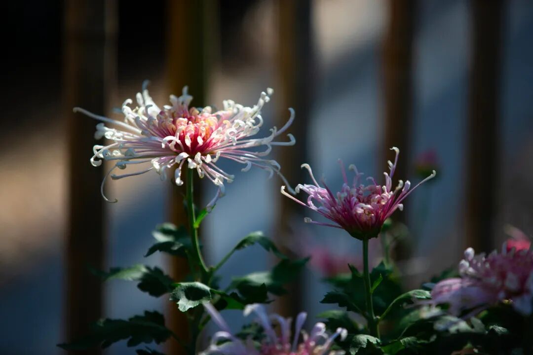 走进公园,一盆盆各式各样的菊花琳琅满目。本届菊展以“菊光流影·诗径行秋”为主题,巧妙融合江南古典园林的建筑元素,推出8大菊艺主题小品、5处打卡点。园内湖池沿岸、庭院及花境等处,布置了体量不一的大立菊、悬崖菊、盆景菊等;西门照壁、水杉林、雪海堂庭院等处的石桥、芳池护栏、内园醉白池四周,也点缀着各色悬崖菊;厅堂内则辅以案几、花几等,布置了盆景菊、品种菊等。整个花展共展出100多个品种、11000余盆彩菊,匠心独运地打造出金秋菊韵的美好景象。