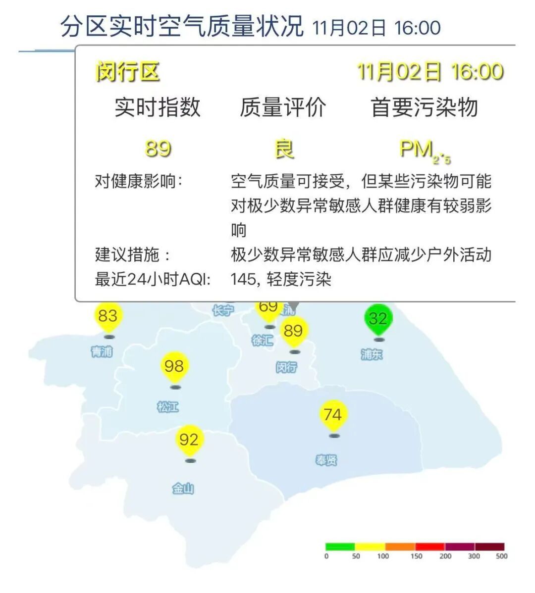 闵行区AQI为89,良。