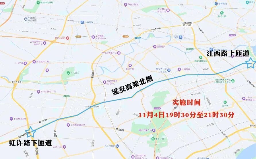 市公安局介绍,为确保2025年中国国际进口博览会专场活动安全、顺利进行,根据《中华人民共和国道路交通安全法》等法律法规,决定于2025年11月4日、5日对本市部分区域、道路和轨道交通车站等采取临时交通管制措施。详见↓ 一、部分道路和区域临时管制措施 (一)11月4日17时至21时,大名路(含)—长治路(不含)—东长治路(不含)—旅顺路(不含)—东大名路(含)—大名路(含)—南浔路(含)—黄浦路(含)所合围的区域内,禁止一切车辆及行人通行。 (二)11月4日17时至21时,南苏州路—中山东一路—延安东路—四川中路(含上述道路)所合围的区域内,禁止一切车辆通行。 (三)11月4日17时至21时,外白渡桥,双向禁止一切车辆及行人通行;乍浦路桥、四川路桥,双向禁止一切车辆通行。 (四)11月4日17时至21时,延安东路(浙江中路至四川中路)双向禁止一切车辆通行。 (五)11月4日17时至19时30分,延安高架南侧(虹许路上匝道至江西路下匝道),禁止机动车通行; 19时30分至21时30分,延安高架北侧(江西路上匝道至虹许路下匝道),禁止机动车通行; 19时30分至21时30分,外滩隧道延安东路出口(往延安东路地面和延安高架方向)关闭,禁止机动车通行。 (六)11月4日17时至21时,延安东路隧道双向禁止机动车通行。 (七)11月5日7时30分至10时30分,延安东路隧道(北线)禁止机动车通行。 (八)11月5日7时30分至10时30分,延安高架北侧(江西路上匝道至S20外环线)、G50北侧(S20外环线至嘉闵高架)、嘉闵高架东侧(G50至建虹高架)禁止机动车通行。 (九)11月5日7时30分至10时30分,华翔路(申兰路至苏虹路)双向禁止一切车辆通行。 (十)11月5日7时30分至10时30分,诸光路一盈港东路一涞港路一崧泽大道(含上述道路)所合围的区域内,禁止一切车辆及行人通行。 (十一)持有专用通行证车辆和人员允许进入交通管制范围。 二、有关轨道交通车站临时管制措施 11月5日当日运营开始至14时,轨道交通2号线国家会展中心站、2号线潘祥路·国家会计学院站实施封站跳停,车站出入口关闭。 届时,公安机关将根据实际情况提前或推迟交通管制时间,扩大或缩小交通管制范围,请广大市民事先做好出行安排,积极配合公安机关工作。 点击下方了解更多 普陀再添Top赛场!2025上海Top Run 10公里精英赛报名开启! 沿沪宁创新成果展示交易会助力南京科创企业拓展上海大市场 | 智汇沿沪宁 聚力谋新篇 【党建引领物业治理】质价双提升!甘泉路街道让民心工程暖民心 【提示】第八届进博会“进博专线”发车了,来看都有哪些线路→ 普陀 你好 | 柳映水韵,繁华市井意悠然