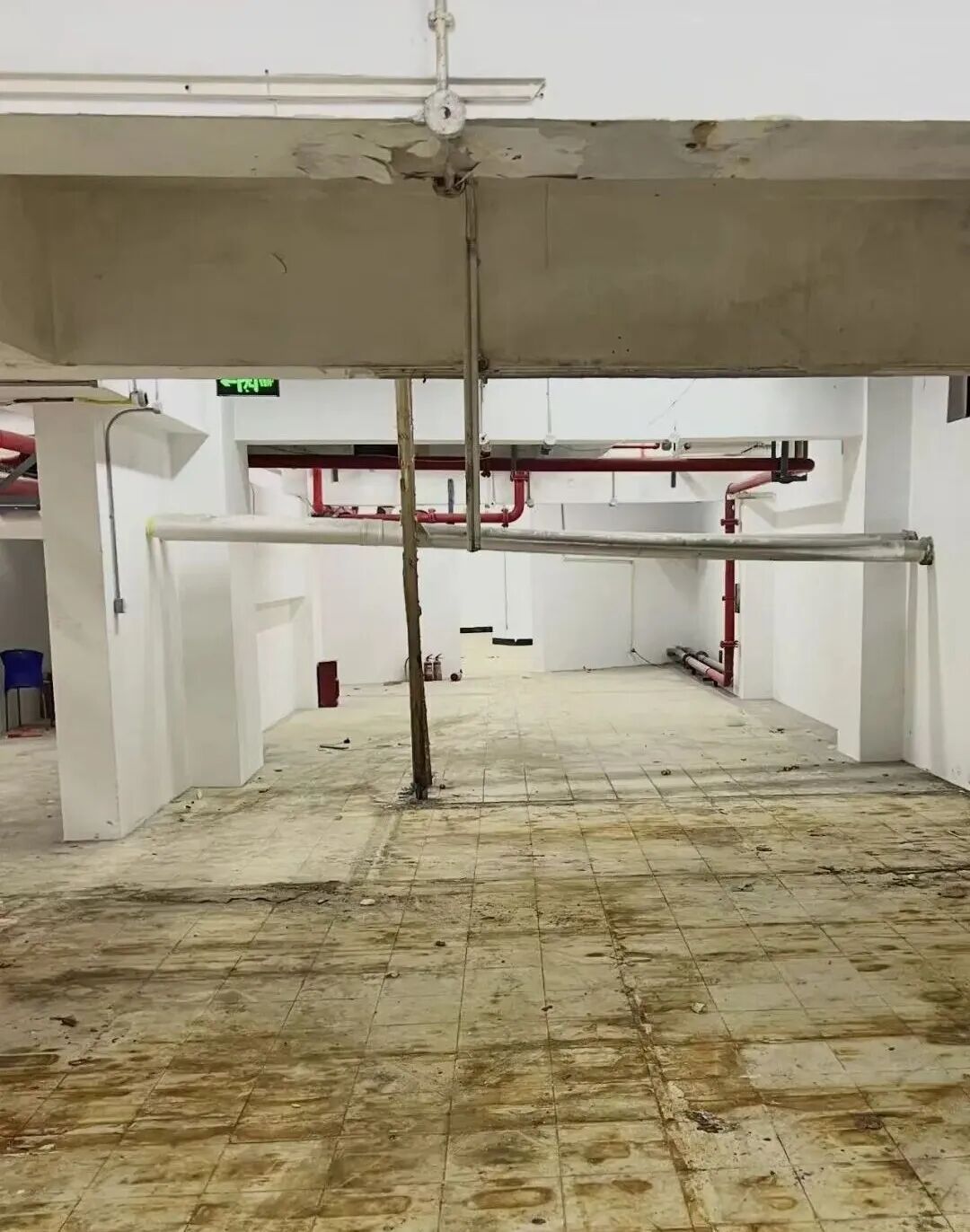 广场大厦建成于20世纪90年代,其地下空间因层高预留曾长期闲置,逐渐沦为杂物堆积的区域。去年8月,污水管道破裂导致5公分深的积水漫溢,异味刺鼻,居民生活深受其扰。面对这一困境,居委会、业委会与物业迅速行动,更换破损管道、粉刷墙面,初步排除了安全隐患。