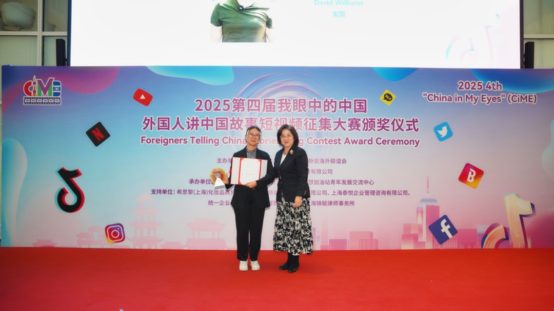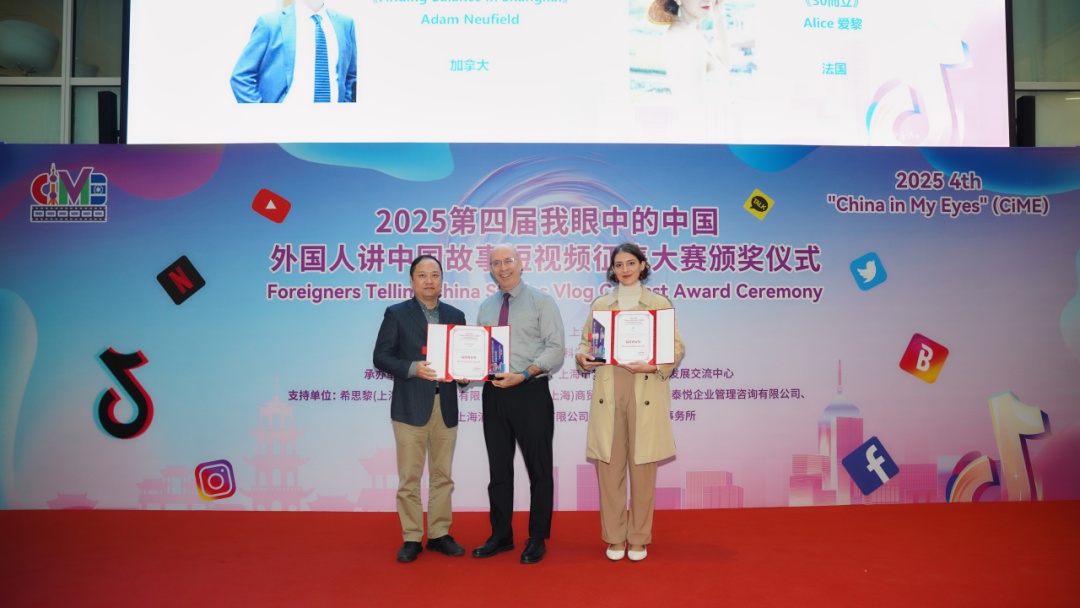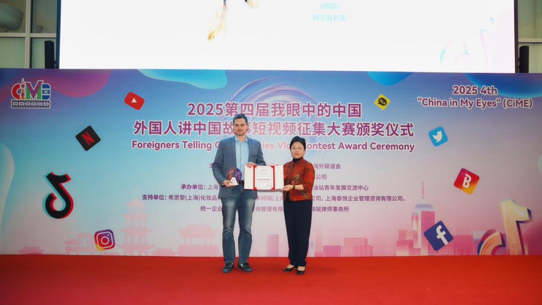 11月2日,第四届“我眼中的中国”外国人讲中国故事短视频征集大赛颁奖仪式在静安国际会客厅举行。活动由上海市欧美同学会、上海市静安海外联谊会主办,上海市欧美同学会静安分会、上海市梦想加油站青年发展交流中心承办。大赛旨在通过外国友人的独特视角,展现真实、立体、全面的中国形象,为促进中外文化交流、文明互鉴搭建一座“视听之桥”。上海市欧美同学会专职副会长邹芳,上海市静安海外联谊会会长顾定鋆,上海市欧美同学会副会长、静安分会会长冯丹龙及70余位海内外嘉宾和参赛选手参加颁奖典礼。中国搜索信息科技股份有限公司作为战略合作单位参与活动。