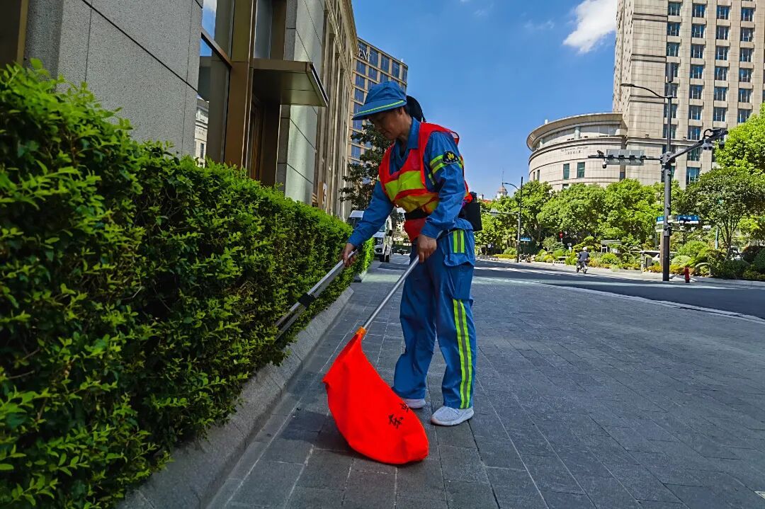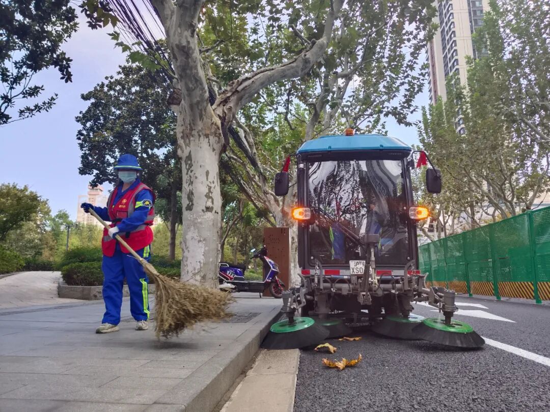 清晨的四川北路,环卫工人驾驶着新型电动三轮车穿梭而过,机械清扫与人工保洁无缝衔接,路面垃圾一扫而光。早晚高峰时段,增派的飞行保洁人员动态巡查,确保突发污渍等情况快速有效处置。