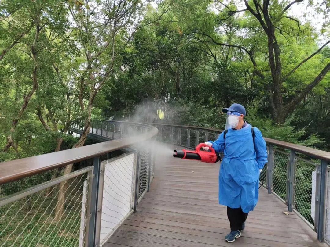 各公园同步加强了对游乐设施的安保巡查,严格落实座椅、废物箱等公共设施的清洁消毒,园内垃圾日产日清,让市民游园更加安心舒适。