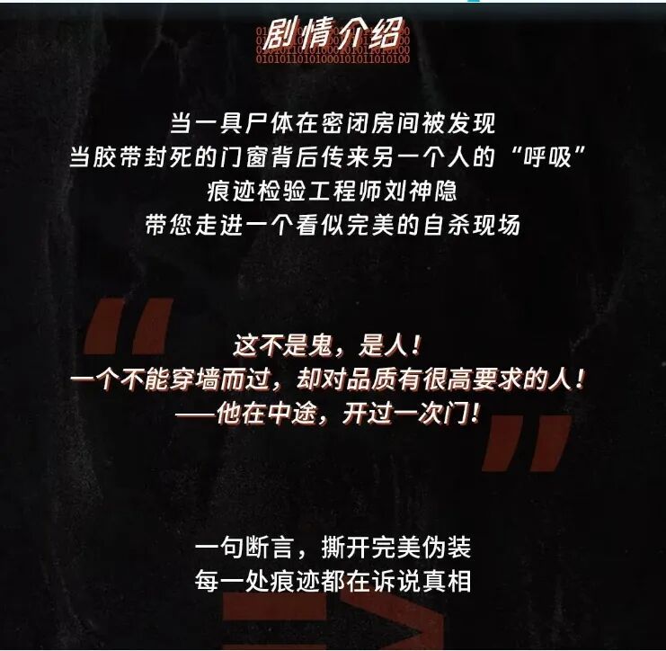 该剧没有传统悬疑剧的惊悚音效,却以“台词造景”让观众成为推理共建者——当演员念出“胶带边缘的指纹方向”,观众需在脑海中还原密室布局;当刘神隐分析“代码逻辑与犯罪心理的关联”,烧脑的技术细节与人性博弈将同步展开。