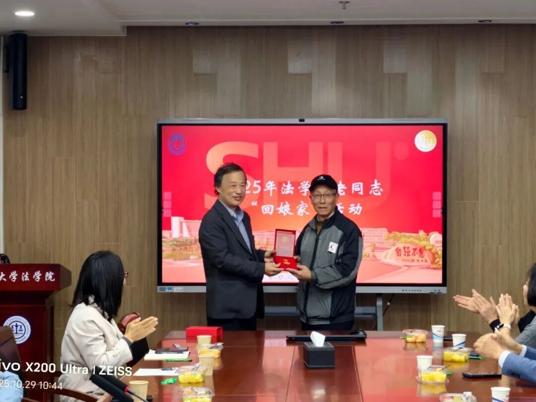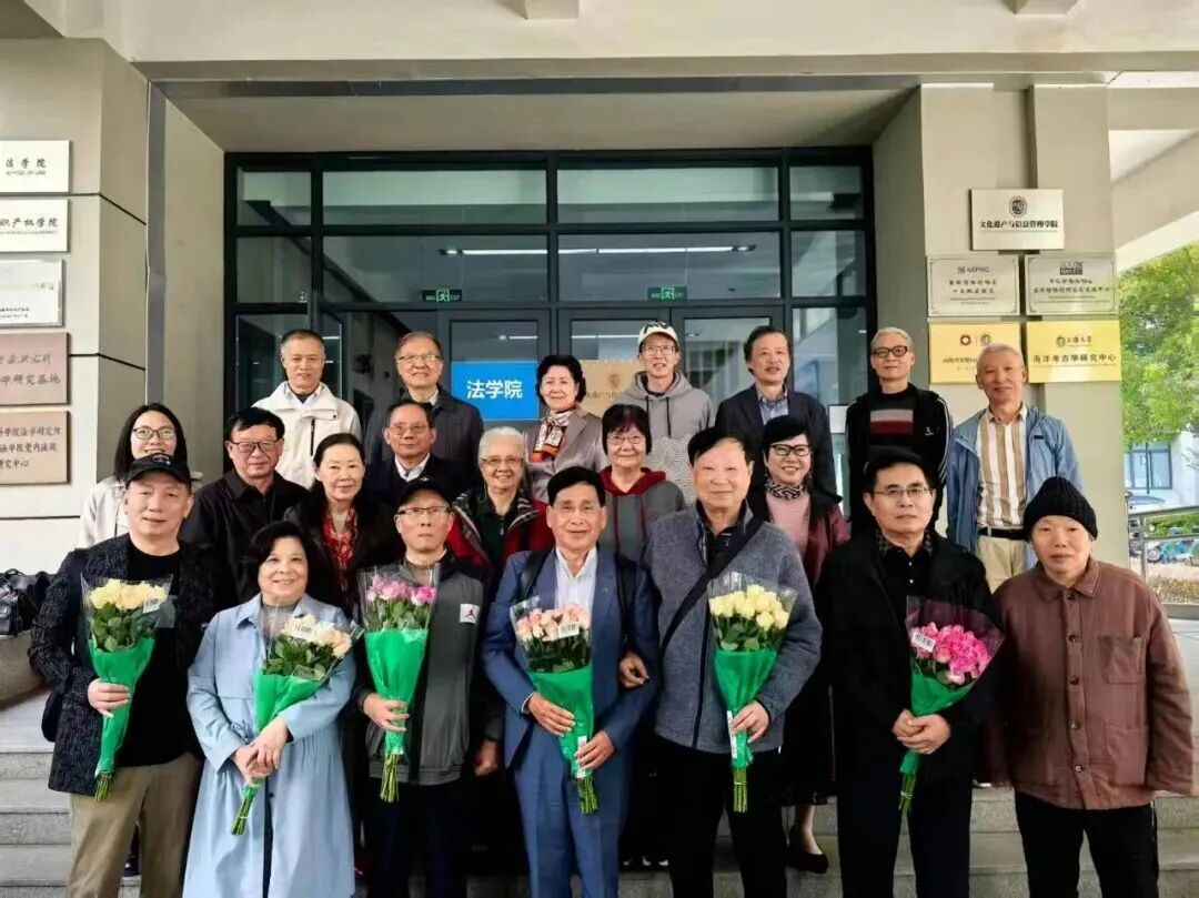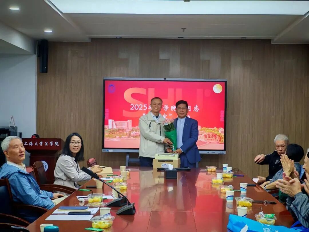 秋光聚校园 共话赋新章 近期开展的“敬老月”活动中,各学院、部门诚挚邀请昔日深耕讲台、默默奉献的老教师们“回娘家”,共忆执教岁月里的桃李情深,同话学校事业的崭新发展。 离退休老师们与老友校园健步,赏银杏桂香,重拾校园记忆。还分享了各自丰富多彩的离退休生活,内容涉及健康养生、旅行见闻、文艺展示等,展现出“退休亦精彩”的生活态度,既有淡泊从容的雅趣,也有终身学习的热忱。 “昔日您扶我登高,今朝我陪您望远”。此次“敬老月”校园重聚不仅让离退休教师感受到学校的牵挂与祝福,也进一步弘扬了中华民族“敬老、爱老、助老”的传统美德。 上海电影学院 法学院 《贺法学院退休同志敬老节返校》 倪才龙 金秋送暖聚黉门, 霜鬓重逢笑语温。 曾执教鞭传法理, 今归故苑话寒暄。 丹心未改忧时志, 白首犹存育李恩。 最是今朝情满座, 欢声长伴夕阳喧。 《2025学院重阳聚会》 陶鑫良 白云蓝天回校门, 日丽风和秋熙温。 执教上大法相聚, 退隐春申谊长存。 满十逢五寿星缘, 薄发厚积同舟恩。 一年一度重阳会, 天亦共情秋渐深。 法学院两位退休老师现场赋诗 材料科学与工程学院 管理学院 环境与化学工程学院 机电工程与自动化学院 计算机工程与科学学院 继续教育学院 经济学院 理学院 力学与工程科学学院 马克思主义学院 上海美术学院 社会学院 生命科学学院 体育学院 通信与信息工程学院 外国语学院 文化遗产与信息管理学院 文学院 新闻传播学院 中欧工程技术学院 财务处 采购与招标管理办公室 出版社 党政办公室 高教研究所 后勤保障部 教务部 期刊社 人事处 图博档党委 研究生院 离退休工作处 资产公司