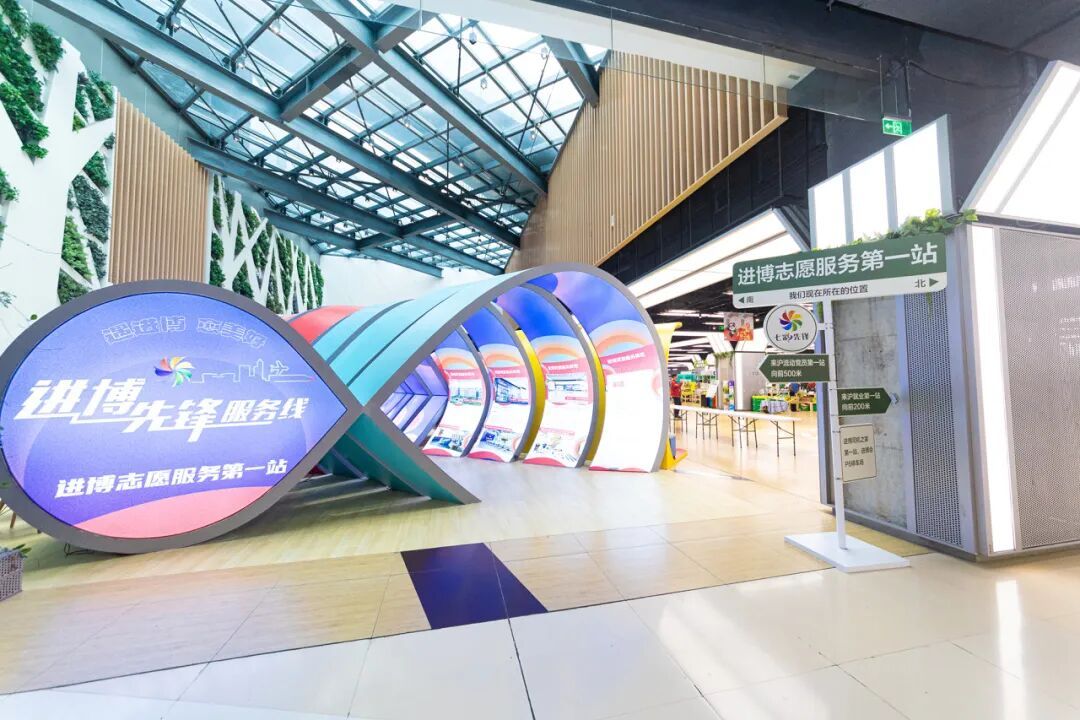 闵行区今年焕新升级“进博先锋服务线”,构建“1轴4站N岗”新格局,以“进博七彩先锋”党群服务站、来沪流动党员第一站和来沪就业第一站等为核心站点,在地铁出入口、高铁出发层等重要位置设立N个志愿服务岗。其中,首次专项招募司机党员志愿者、流动党员志愿者,负责虹桥枢纽至国展中心的交通指引与接驳服务。