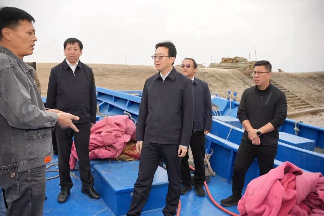 在金汇港渔船停泊点,王益群登船检查安全设施,了解码头使用情况。他指出,要织密安全监管网络,加强航道与渔区管理,严防海上碰撞。要深化跨部门协同,厘清职责边界,形成监管合力。要健全联合应急机制,推动演练与记录常态化,提升海上突发事件处置能力。