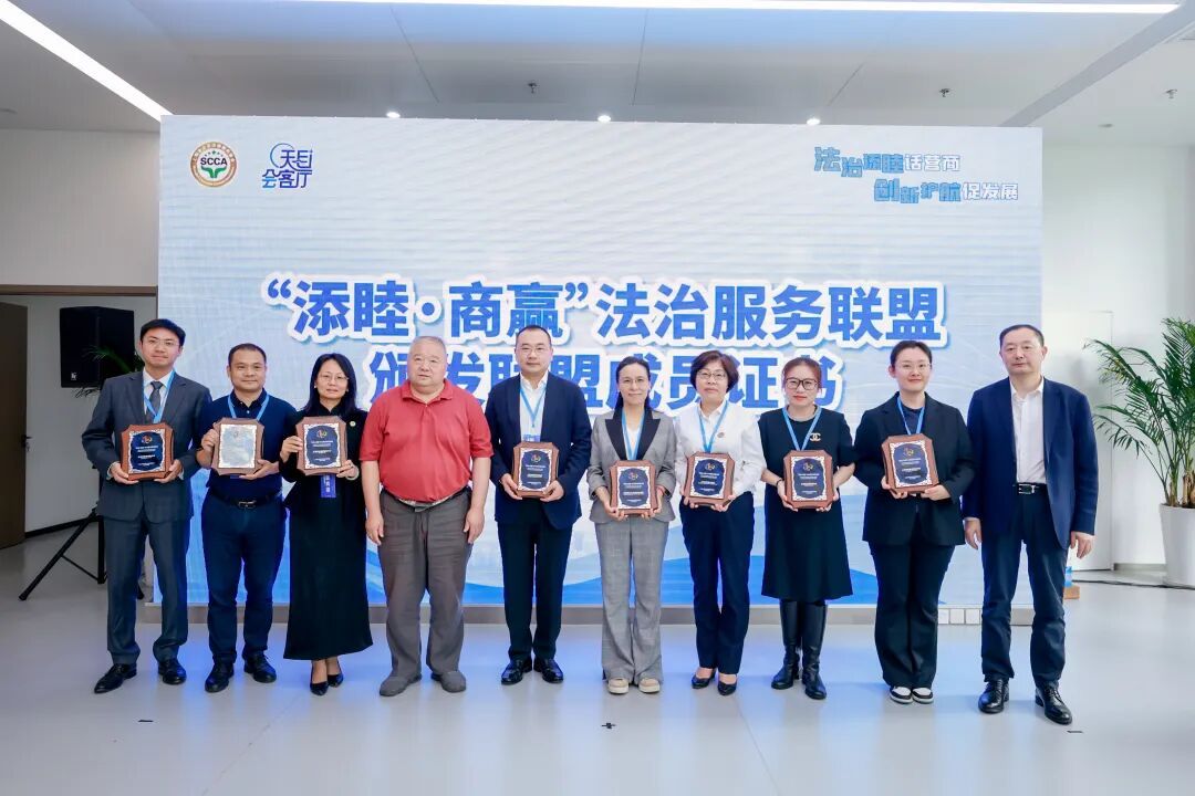 联盟成立后,迅速推出三大核心服务:一是“法治服务包”,涵盖政务优化、知识产权保护等12项定制服务,从企业“稳发展”到“走出去”全链条护航;二是“天目+会客厅” 微论坛,定期聚焦行业热点开展研讨;三是“法治体检”行动,组织专业力量上门为企业排查风险。