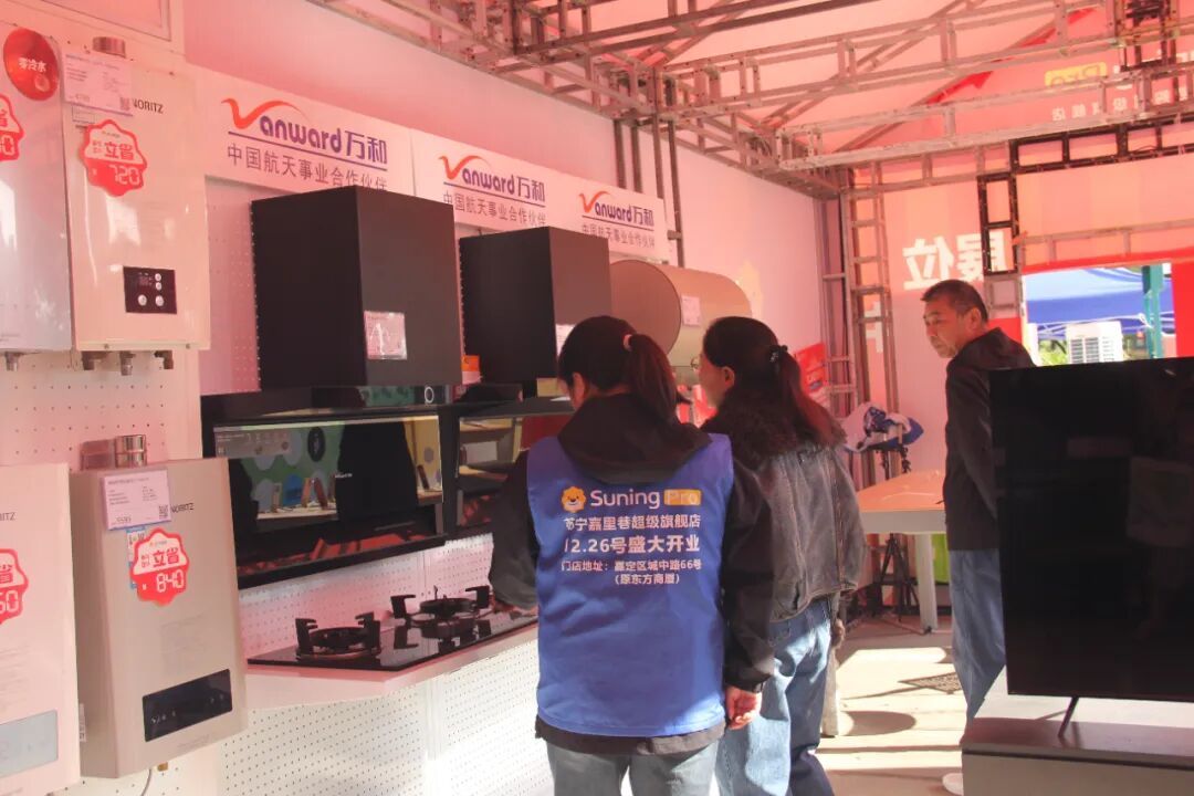 11月3日下午,记者在苏宁易购嘉里巷超级旗舰店门口的展区看到,手机、空调、洗衣机等数码产品和家电有序陈列,不时有市民驻足咨询。“家里正准备换油烟机,听说他们开业活动,除了国补还能再优惠10%左右,特意来看看。”市民章女士表示。