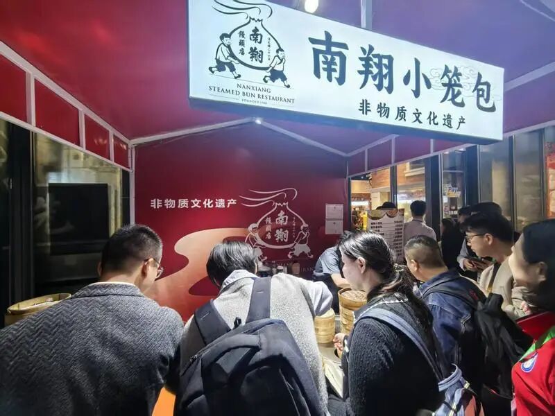 今年,南翔馒头店还在上海特色小吃馆的门口首次设立了展示点位,每天10点到17点期间,经验丰富的点心师就会在这里轮番登场,公开展示南翔小笼馒头的包捏制作等,让人近距离接触上海老字号的非遗技艺与文化。