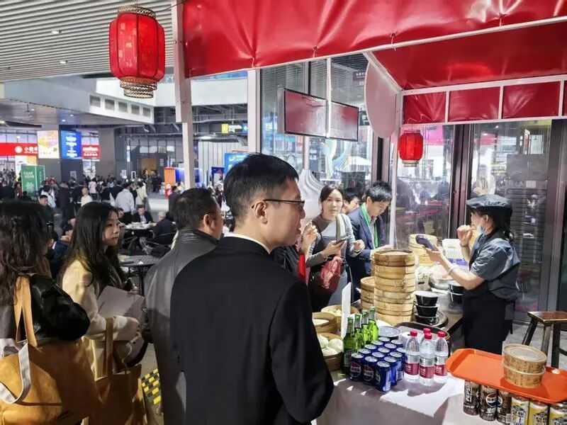 这些现制现售的上海特色点心小吃都是馆内的“人气选手”,单品日销量过千份已经是“常规操作”了。它们不仅吸引了众多国内食客,还有不少外国友人也纷纷闻香而至,不用走出场馆就能把上海的经典美食“一网打尽”。