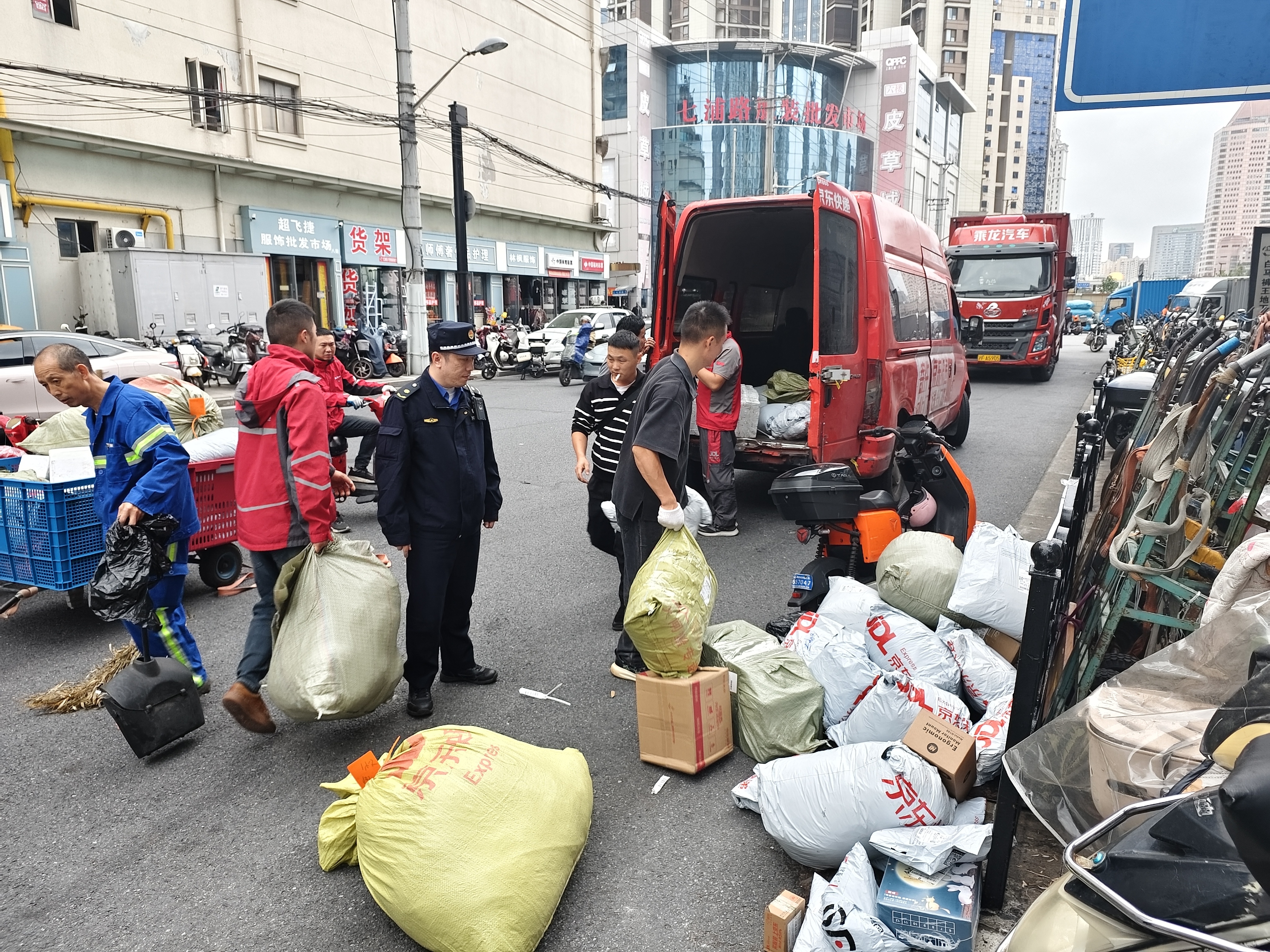 为保障七浦路商圈交通畅通、环境整洁,同时助力快递企业高效完成末端配送,北站城管中队联合七浦路管理办公室、北站交警支队主动出击,通过“划红线、优服务、强监管”三大举措,携手快递企业打响“配送提速”和“市容有序”的双赢之战,以政企协同之力为七浦路商圈“双十一”物流配送保驾护航。