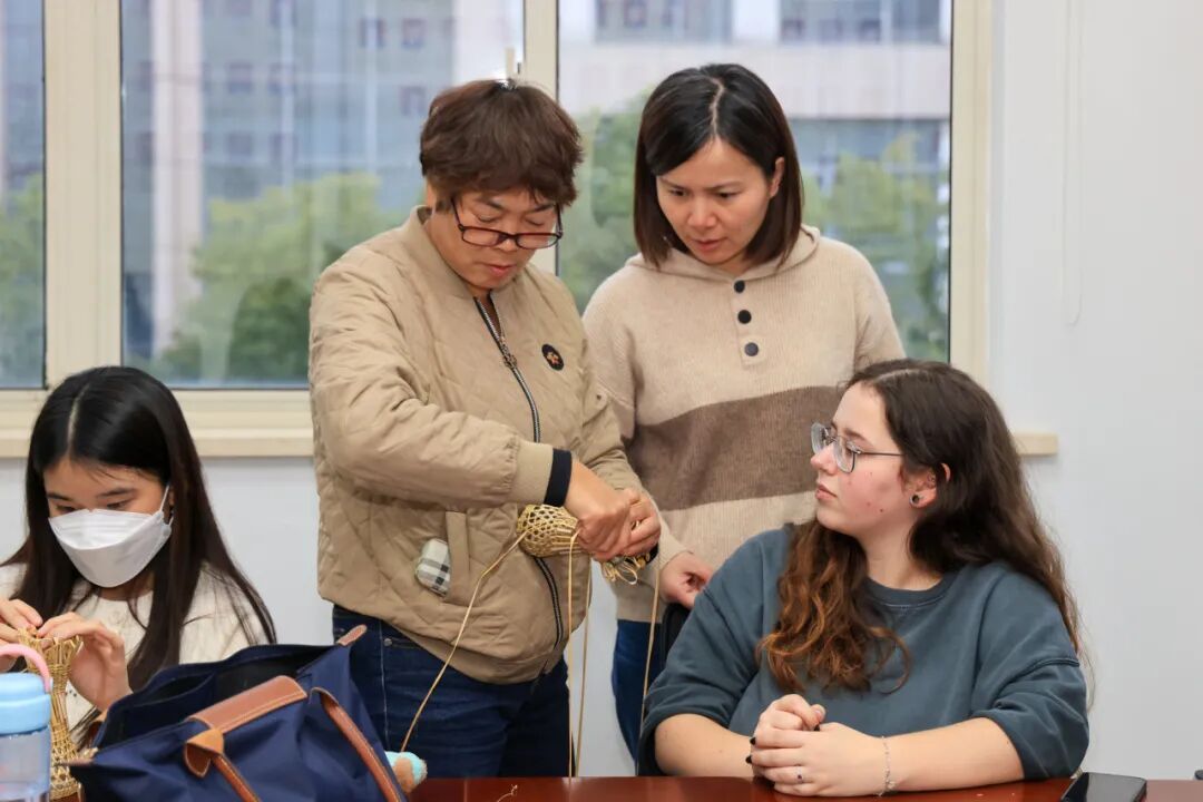 “虽然过程有点难,但当看到自己亲手编织的花瓶逐渐完成时,特别有成就感!”泰国留学生kankanid Pilunowad举起手中的作品,脸上洋溢着喜悦。