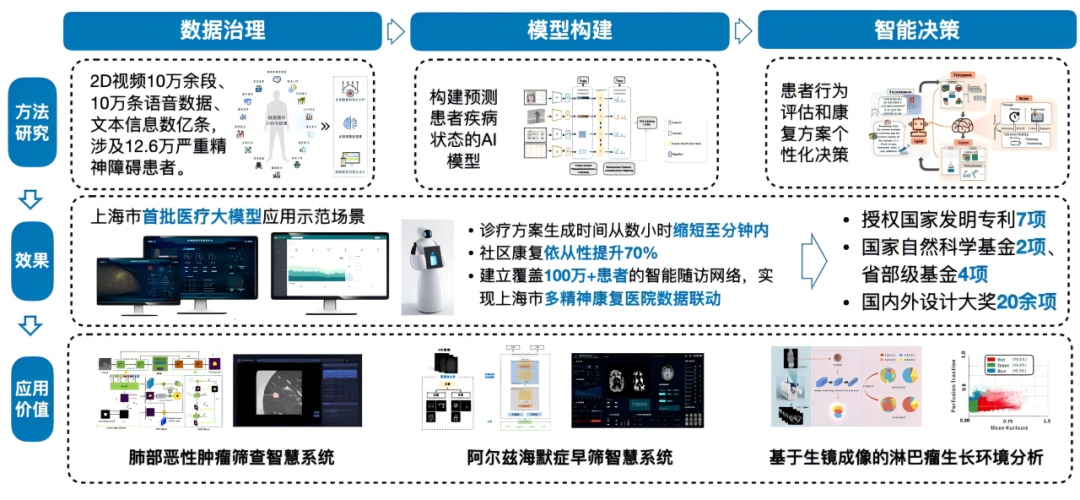 在智慧医疗领域,刘钊联合上海市精神卫生中心开发了国内首个中文精神卫生大语言模型与多模态语料库,构建了智慧化社区精神康复体系。相关成果发表于《柳叶刀》子刊《eClinicalMedicine》,在诊断、治疗与康复一体化管理中实现了示范效应。