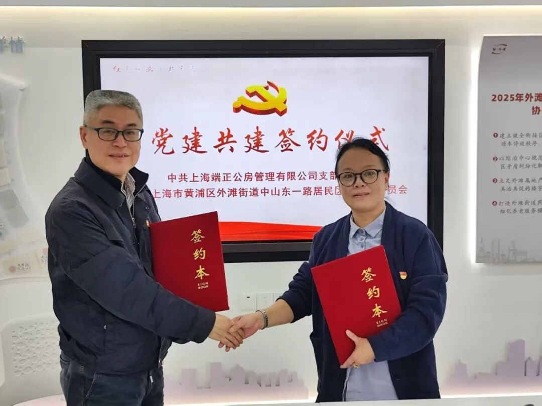 在充分沟通达成共识的基础上,端正公房公司党支部与中山东一路居民区党总支举行了党建共建协议签约仪式。双方党支部书记共同签署共建协议,标志着政企党建共建合作迈入常态化、制度化新阶段。