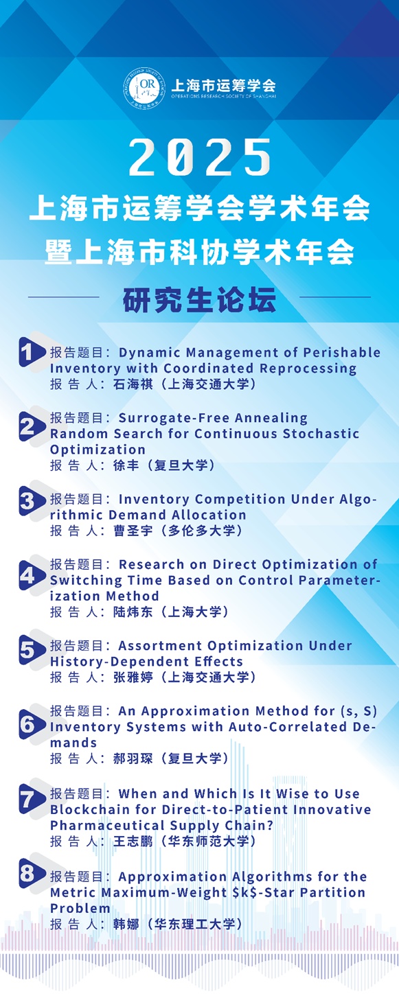 2025年11月5日,上海市运筹学会学术年会暨上海市科协学术年会“数学+医疗”平行论坛在上海科学会堂顺利召开。本次论坛由上海市科学技术协会指导,上海市运筹学会主办,是以“至简至美至无限——数学融合发展之道”为主题的2025年上海市科协学术年会5场平行论坛之一。