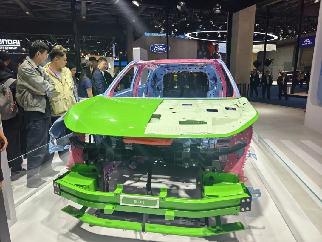 本次Honda展台还展出了荣获“2024中国十佳车身”大奖的全新ACE承载式车身,该车身设计秉承Honda的“共存安全”理念,大量采用高强度钢,其中高强度钢占比高达68%,航空航天级热成型钢占比25%,扭转刚性达4万牛米/度,在保护自身的同时,还能够降低对对方车辆带来的冲击,实现双向车辆的安全保护。