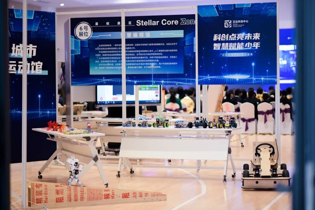 活动当日,正达学子的创新成果在学校体育馆集中展示,校园里科创氛围浓厚。正达科创中心总辅导员、正达科技副校长严律成介绍,正达教育集团已建立起涵盖“基础普及、拓展提升、实践探究”的金字塔型科创教育课程体系:基础普及阶段面向全体学生,开展校本化特色创建;拓展提升阶段聚焦特长培育,开设细分领域的进阶课程;实践探究阶段构建闭环培养系统,鼓励学生将所学转化为科研实践成果。