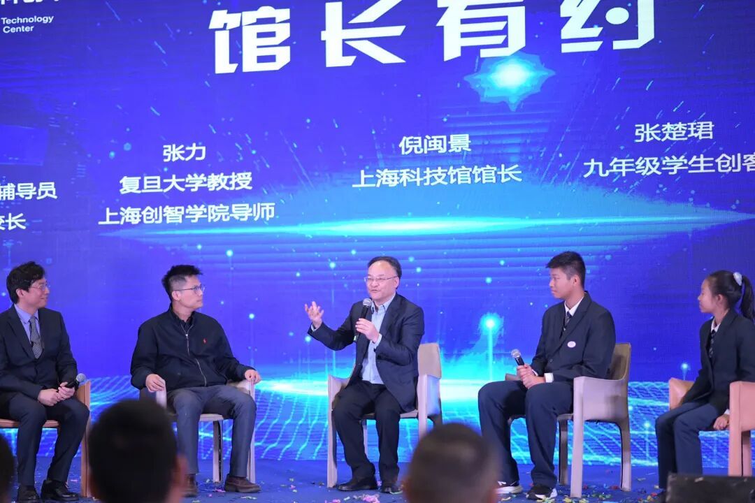 倪闽景还对话学校“小创客”代表、高校教授、校方代表,围绕“科技教育如何赋能青少年成长”这一主题,分享观点、碰撞思想。复旦大学教授、上海创智学院导师张力表示,作为高校研究者,非常期待看到中小学为学生打造跨学科学习平台,让学生从小有机会参与和科技相关的实践应用活动,培养发现问题、解决问题、动手操作、与人合作等能力。