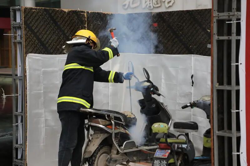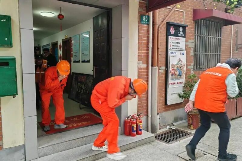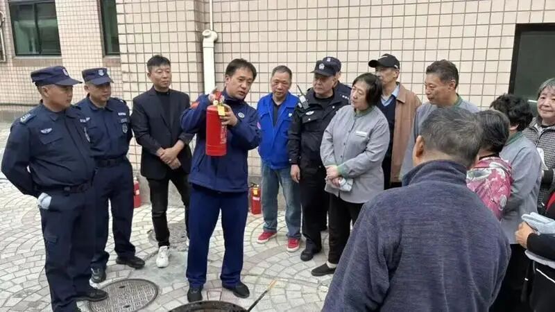 “提起灭火器,拔掉保险销,握住喷管,对准火焰根部!”在外滩街道山北居民区,消防员正在手把手教居民使用灭火器。不远处的北京居民区,一场模拟火灾疏散演练也正在进行,社区居民在志愿者引导下有序撤离。