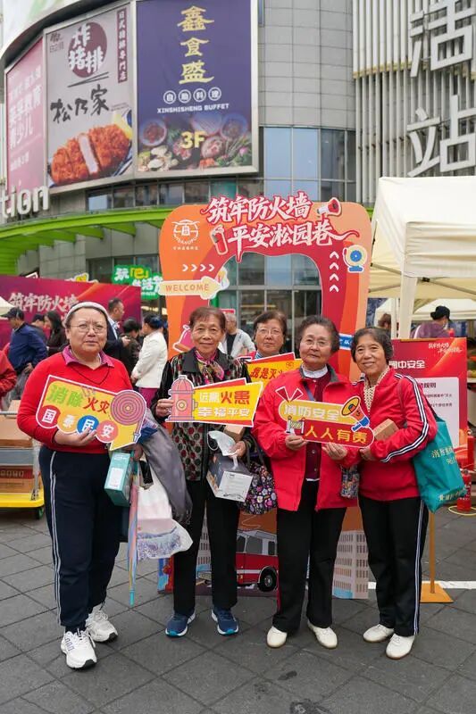 如果说演练是“必修课”,那各街道的创新活动就是“选修课”了。半淞园路街道在新邻生活站打造的消防游园会堪称“人气王”!七大互动摊位围成环形,居民们拿着集章卡穿梭其中。完成所有打卡的居民还能兑换精美礼品,可谓收获满满。