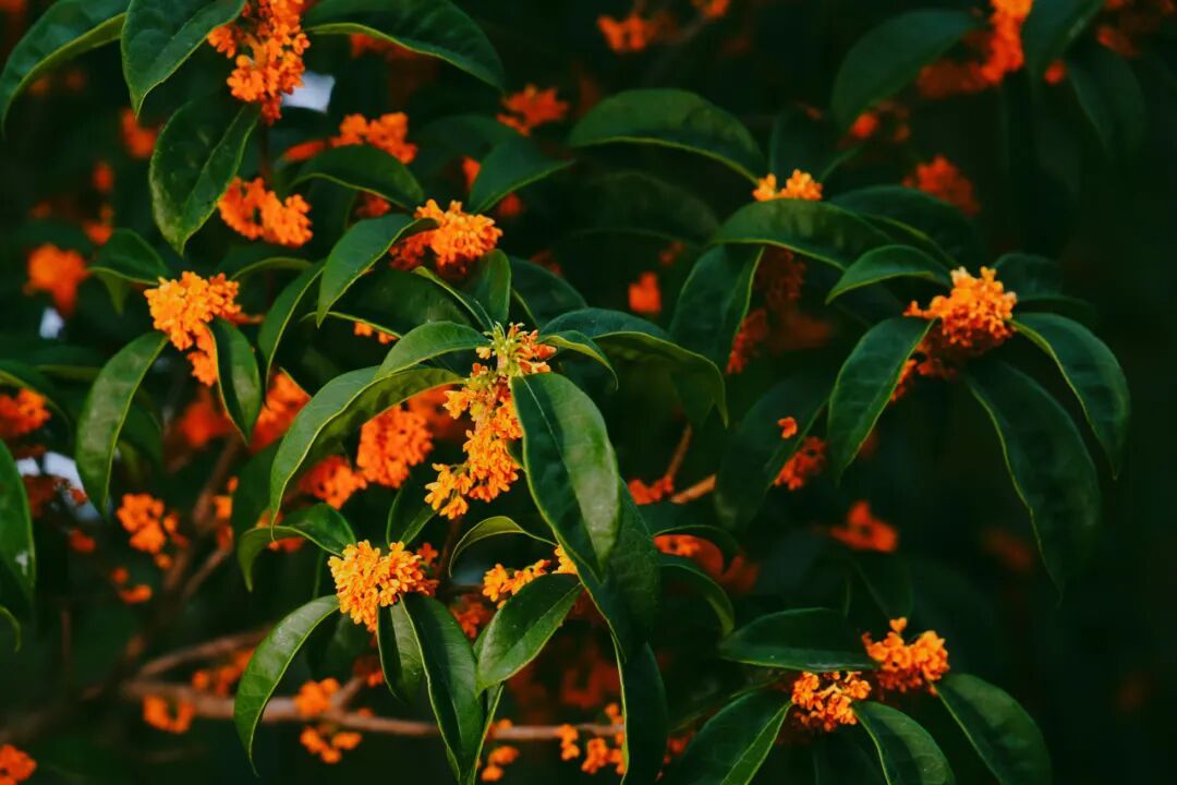 不同品种的桂花在秋日里各展风姿,金桂如碎金摇曳,香气馥郁醇厚,银桂似绢花轻垂,清香淡雅悠长,丹桂若丹砂点缀,香味浓烈持久。