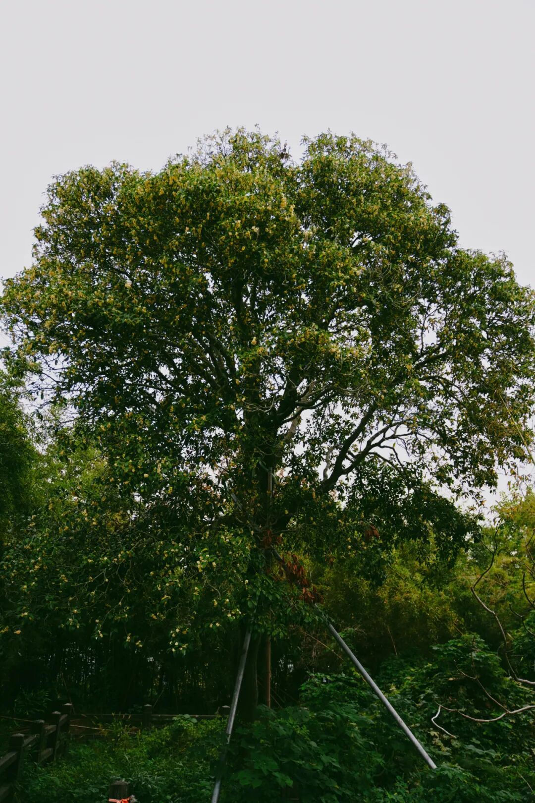 在卫季村,百年桂树枝繁叶茂,金黄花瓣缀满枝头,微风拂过,仿佛在静静诉说岁月故事。