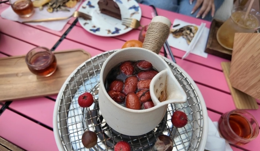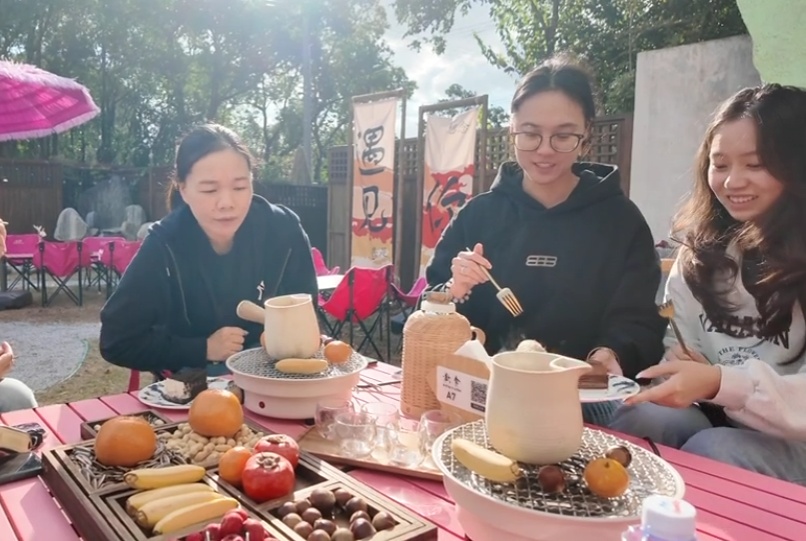 天气一冷,“围炉煮茶”又火了起来。不少市民选择在咖啡店里煮茶、烤点心,享受充满暖意的氛围。坐落于港东公路的合欢tea&coffee里,几位市民正围炉而坐,炉子上的一壶茶在微火慢煮,茶壶边烤的水果和点心香气四溢,大家一边等待食物被烤熟,一边惬意地聊着天,欢声笑语不断。“跟朋友们坐在一起喝喝茶、吃吃点心,很舒服、很惬意。” 一位市民说。