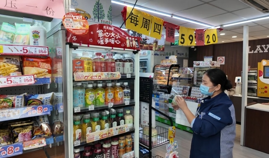 不少商家店里的热饮销量也在不断攀升,记者在城内一家便利店看到,暖柜被放置在收银台旁的醒目位置,里面摆放了十多种饮品。店员告诉记者,最近热饮的需求量明显增多,一天下来,要给暖柜补好几次货。